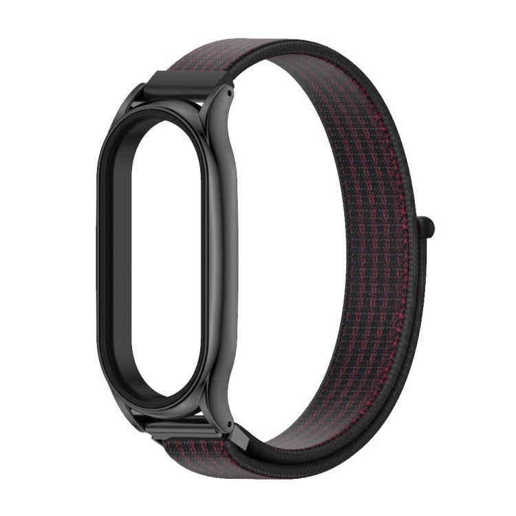 Correa de Reloj + estuche Mijobs Plus para Xiaomi Mi Band 8 con lazo de nylon transpirable (Negro Rojo)