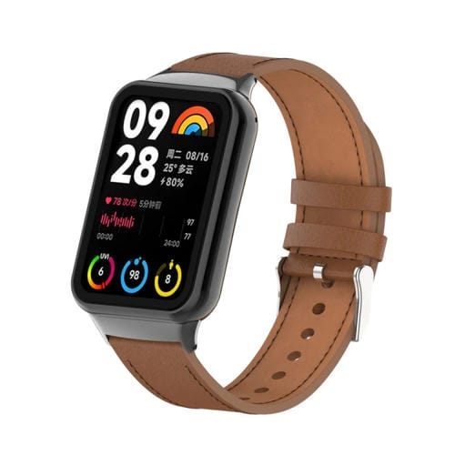 Correa de Reloj para Xiaomi Mi Band 8 Pro de Cuero con Costura en Microfibra 18mm (Marrón)