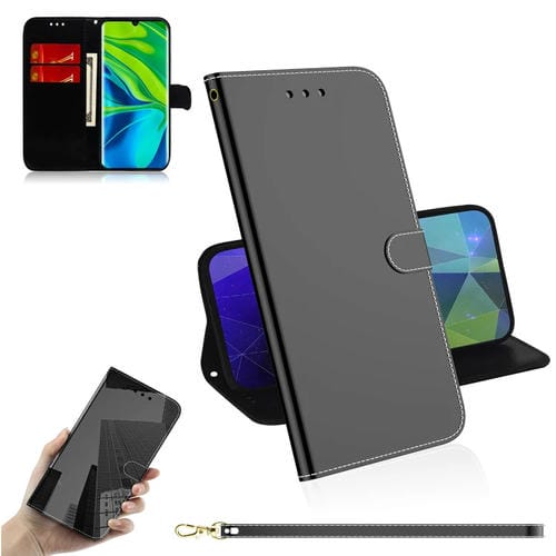 Para Xiaomi Mi Note 10 Funda de Cuero con Tapa Horizontal con Superficie de Espejo Lmitado con Soporte y Ranuras para Tarjetas y Billetera y Cordón (Negro)