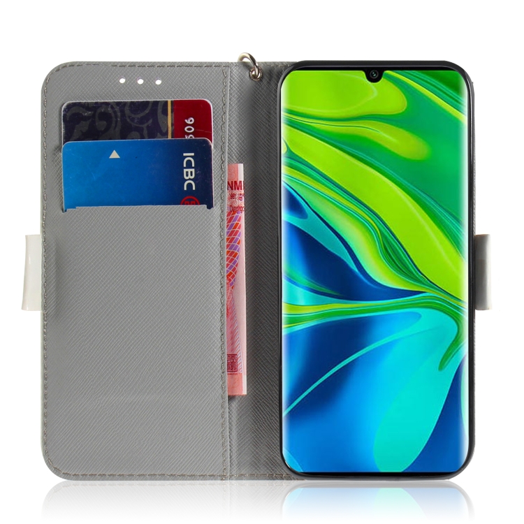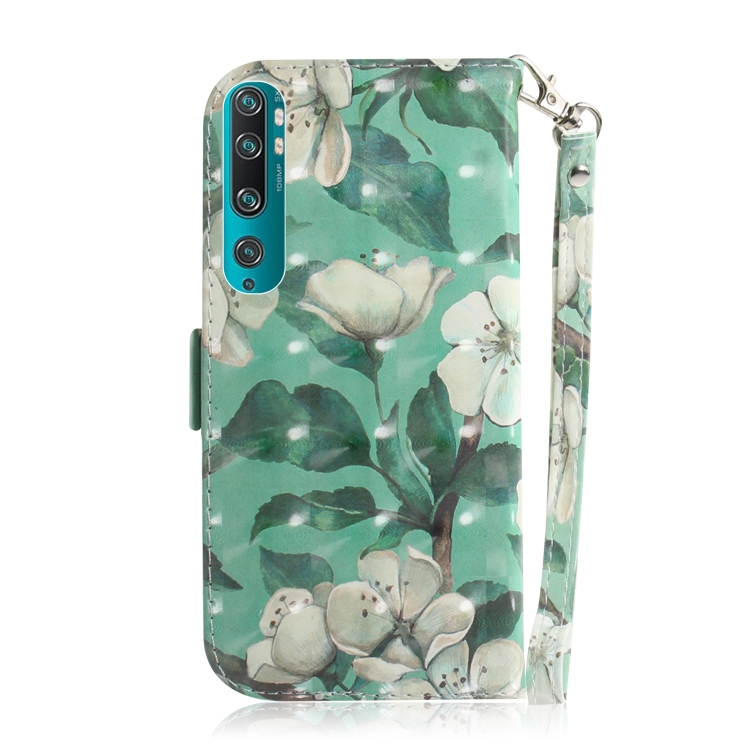 Para Xiaomi Mi Note 10 Funda de Cuero con Tapa Horizontal de Pintura 3D con Soporte y Ranura para Tarjeta y Billetera y Cordón (Flores de Acuarela)