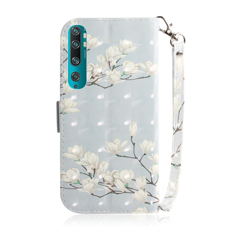 Para Xiaomi Mi Note10 Pro 3D Painting Funda de Cuero con Tapa Horizontal con Soporte y Ranura para Tarjeta y Billetera y Cordón (Flor de Magnolia)