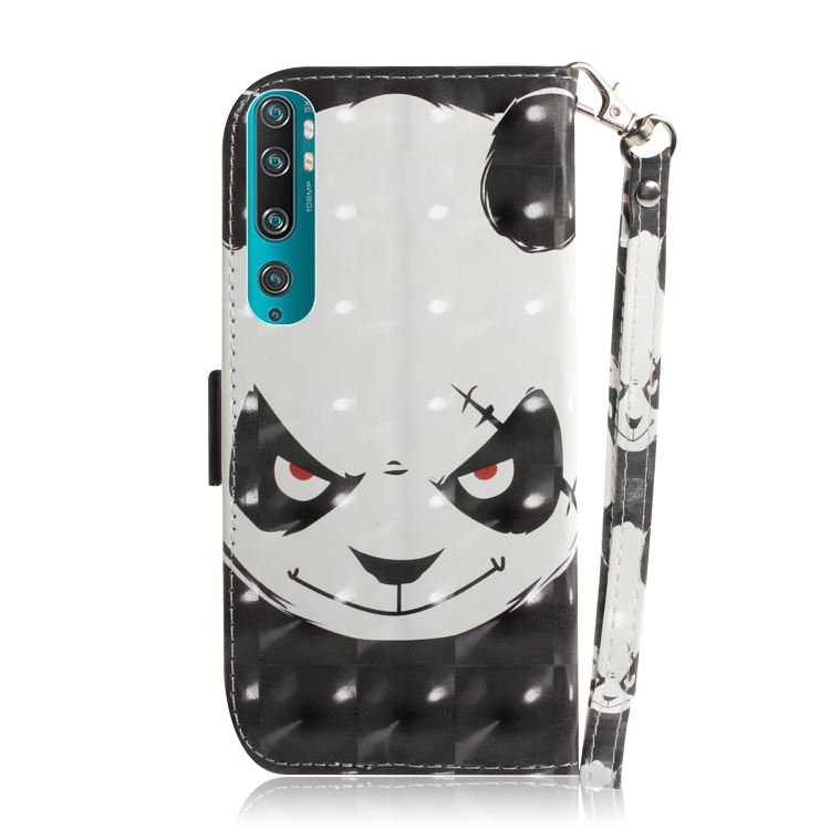 Para Xiaomi Mi Note10 Pro 3D Painting Funda de Cuero con Tapa Horizontal con Soporte y Ranura para Tarjeta y Billetera y Cordón (Oso Enojado)