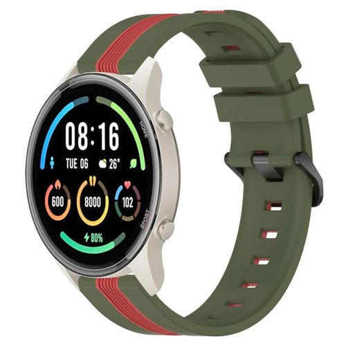 Banda de Reloj Xiaomi Mi Watch Sport 22mm Silicona Dos Colores Vertical (Verde Militar + Rojo)