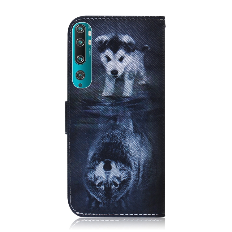 Para Xiaomi Note 10 Pro Estuche de Cuero Abatible Horizontal con Dibujo de Color 3D con Soporte, Ranura para Tarjeta y Billetera (Lobo y Perro)