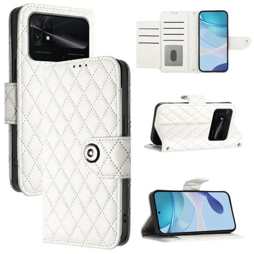 Para Xiaomi Poco C40 Funda para Teléfono de Cuero con Tapa con Textura Rómbica y Cordón (Blanco)