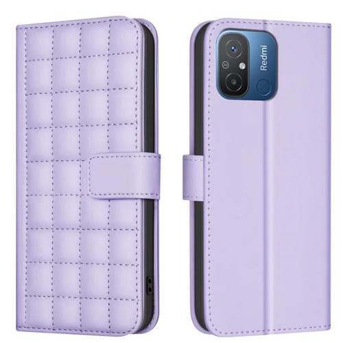 Para Xiaomi Poco C55 / Redmi 12C Funda de Cuero para Teléfono con Textura Cuadrada (Púrpura)