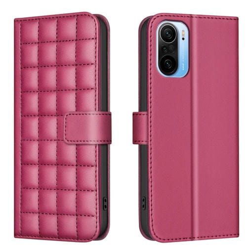 Para Xiaomi Poco F3 / Mi 11I Funda de Cuero para Teléfono con Textura Cuadrada (Rojo)