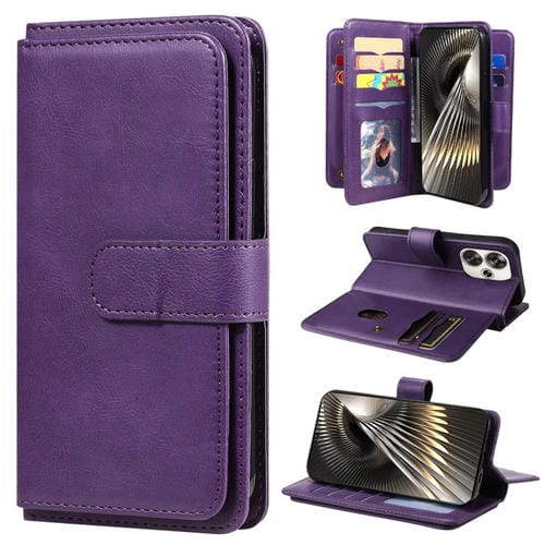 Para Xiaomi Poco F6 Cartera Multifunción 10 Ranuras para Tarjetas Funda de Cuero para Teléfono (Violeta)
