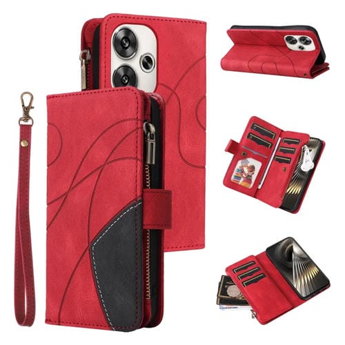 Para Xiaomi Poco F6 Funda de Cuero para Teléfono con Billetera con Cremallera y 9 Ranuras para Tarjetas de Doble Color (Rojo)