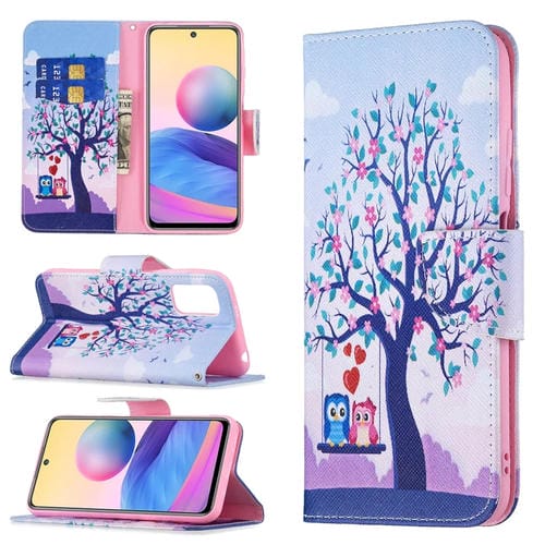 Para Xiaomi Poco M3 Pro / Redmi Note 10 5G Patrón de Dibujo Coloreado Funda de Cuero de Chancletas Horizontales con Soporte y Ranuras para Tarjetas (Búho)
