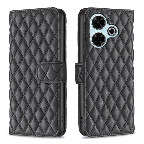 Para Xiaomi Poco M6 4G / Redmi 13 4G Diamond Lattice Wallet Funda de Cuero con Tapa para Teléfono (Negro)