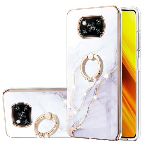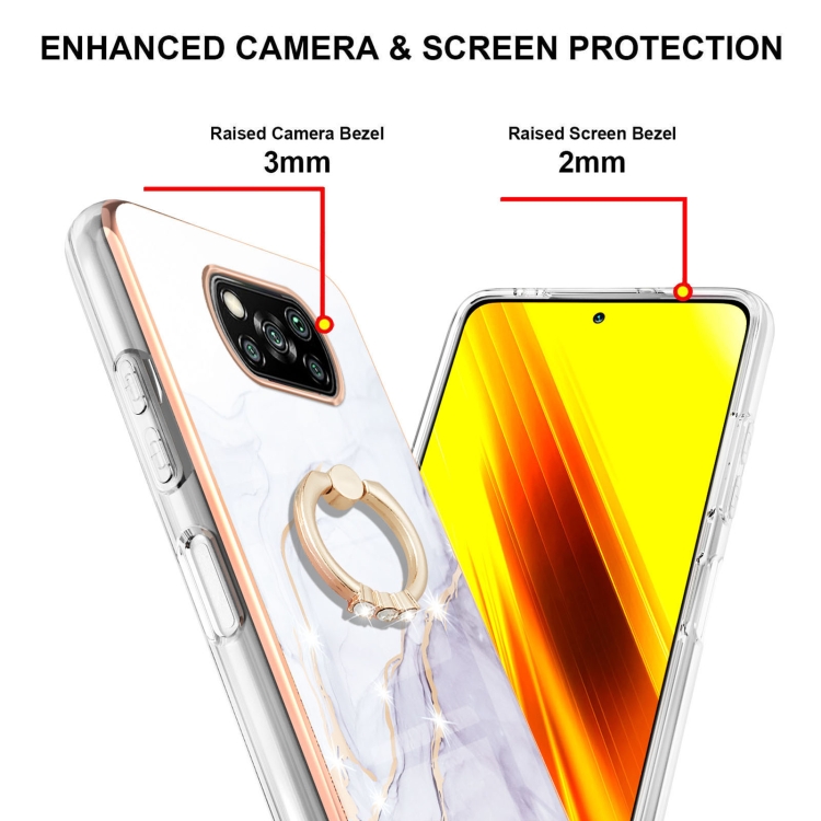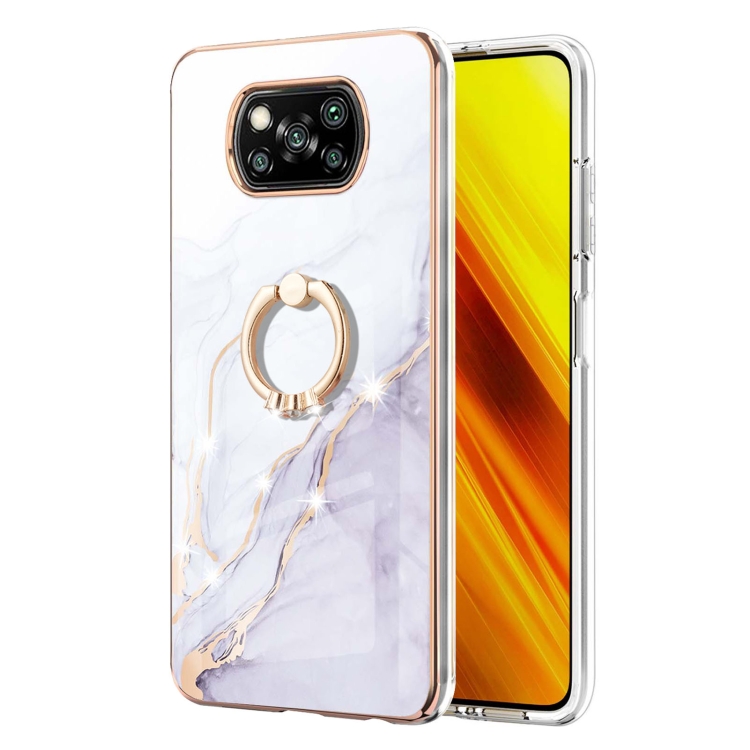 Para Xiaomi Poco X3 Nfc Patrón de Mármol de Electrochaplating Imd TPU Funda a Prueba de Golpes con Soporte de Anillo (Blanco 006)