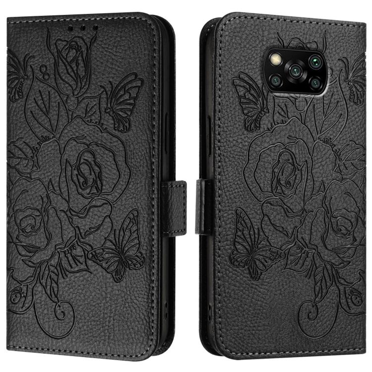 Para Xiaomi Poco X3 / X3 Nfc / X3 Pro Funda de Cuero Antirrobo Rfid con Relieve Rosa (Negro)