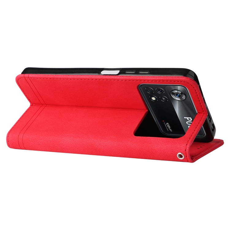 Para Xiaomi Poco X4 Pro 5G piel de piel de la piel del árbol de metal del árbol de la vida (rojo)