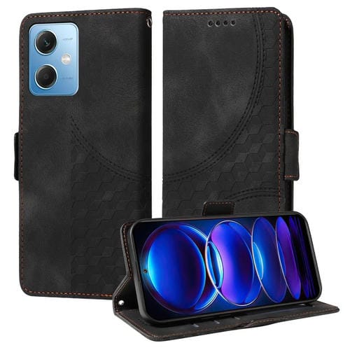 Para Xiaomi Poco X5 Funda para Teléfono de Cuero Estrellado con Rombos En Relieve (Negro)