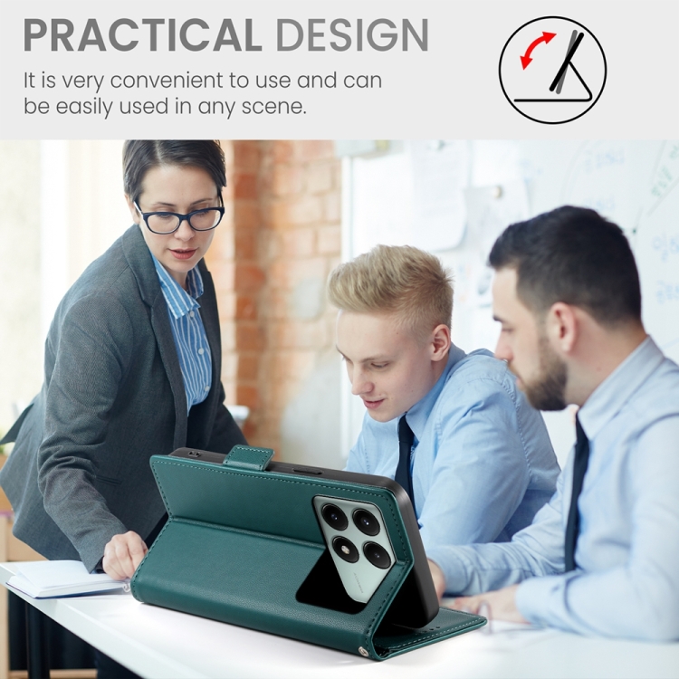 Para Xiaomi Poco X6 Pro 5G Funda para Teléfono de Cuero Esmerilado Magnético con Hebilla Lateral Global (Verde Oscuro)