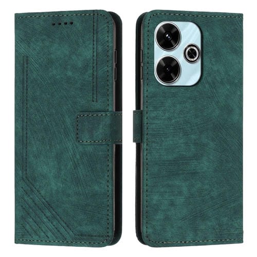 Para Xiaomi Redmi 13 4G Skin Feel Funda de Cuero con Patrón de Rayas y Cordón Largo (Verde)