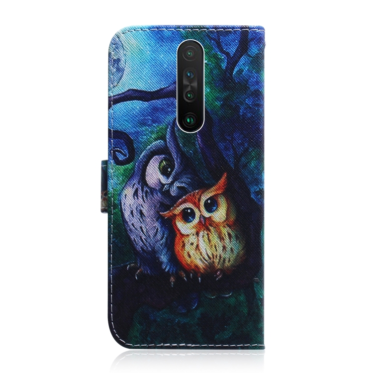 Para Xiaomi Redmi K30 Funda de Cuero Abatible Horizontal con Dibujo de Color 3D con Soporte, Ranura para Tarjeta y Billetera (Búho)