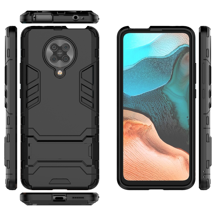 Para Xiaomi Redmi K30 Pro PC + TPU Funda Protectora a Prueba de Golpes con Soporte (Negro)