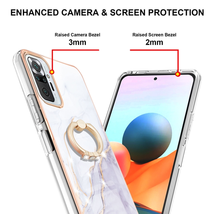 Para Xiaomi Redmi Note 10 Pro / Note 10 Pro Max Materplating Matle Plotty Imd TPU Funda a Prueba de Golpes con Soporte de Anillo (Blanco 006)