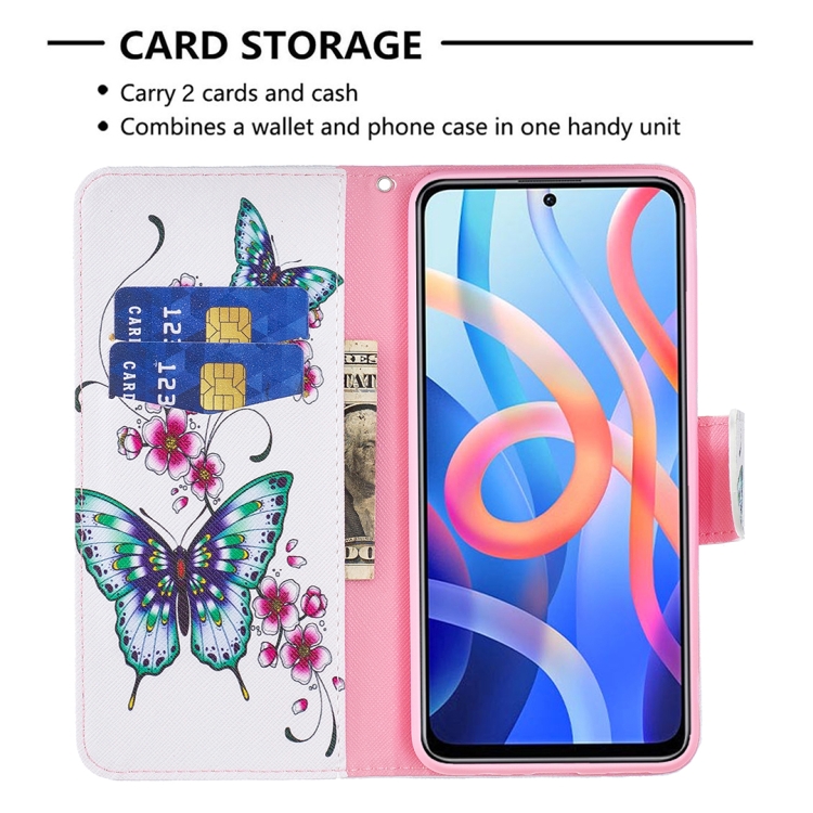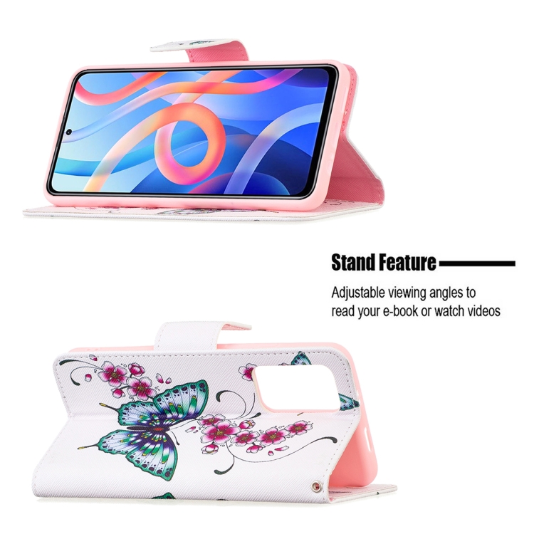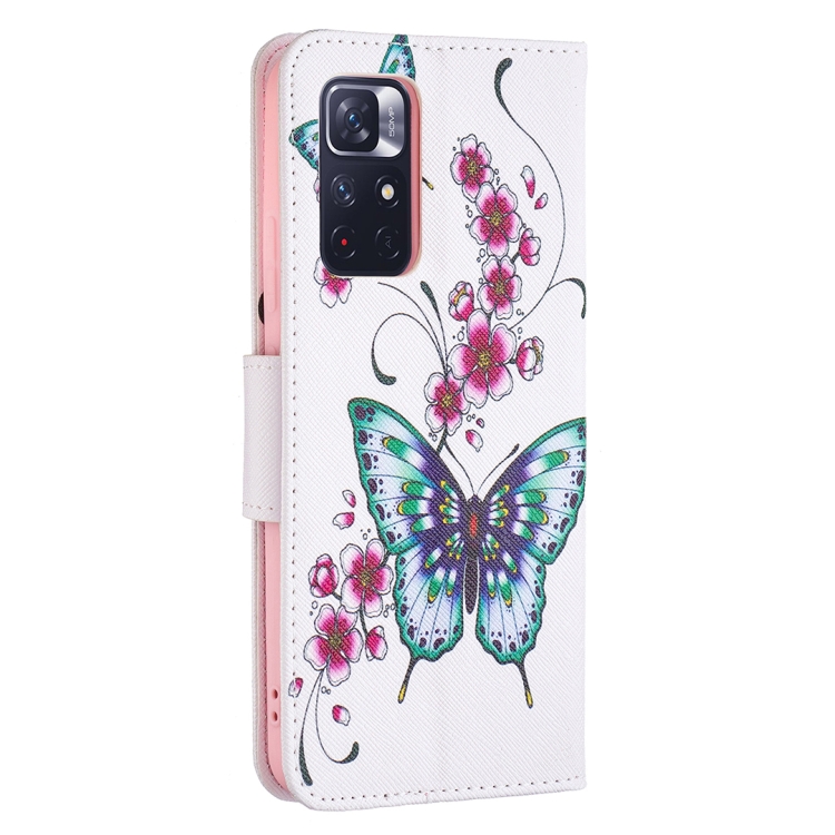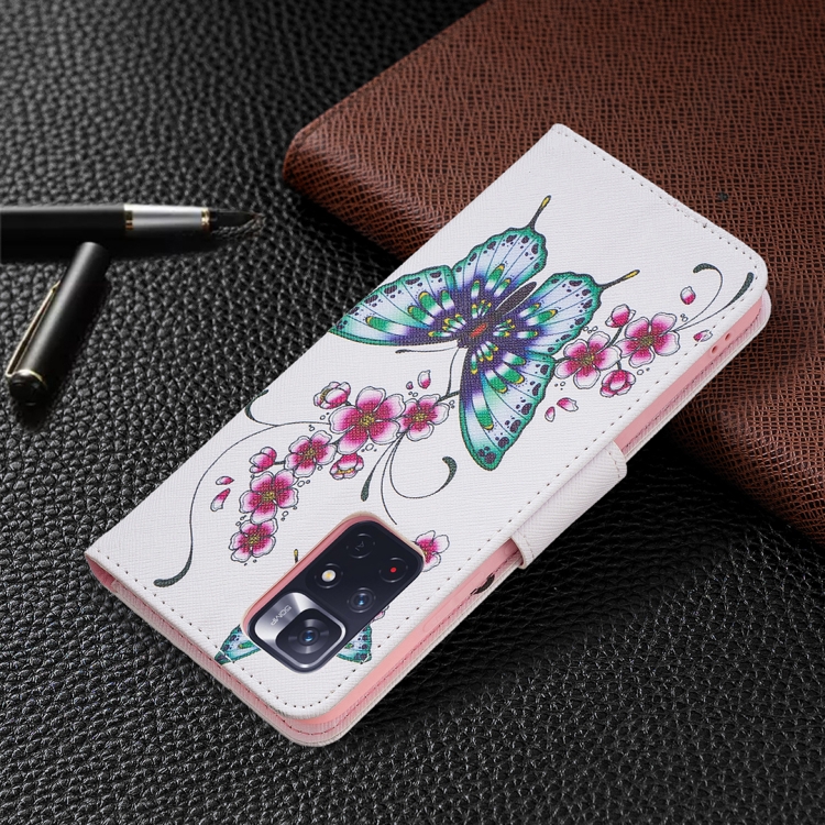 Para Xiaomi Redmi Note 11 Caja de Telefonía de Cuero de Dibujo de Color (Mariposa de Flor de Durazno)