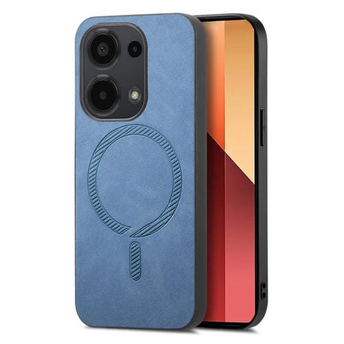 Para Xiaomi Redmi Note 13 4G Color Sólido Retro Magsafe Pu Funda para Teléfono con Contraportada (Azul)