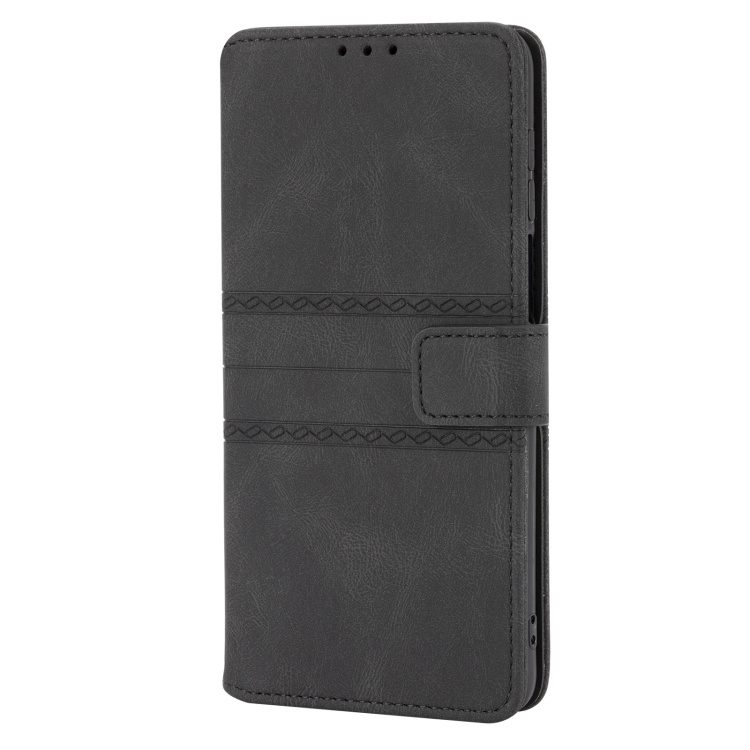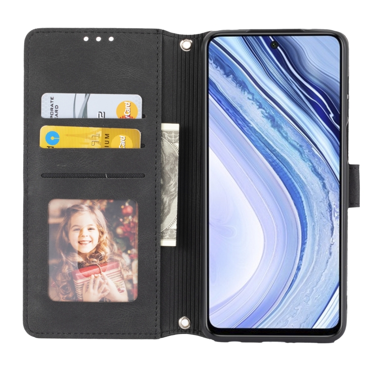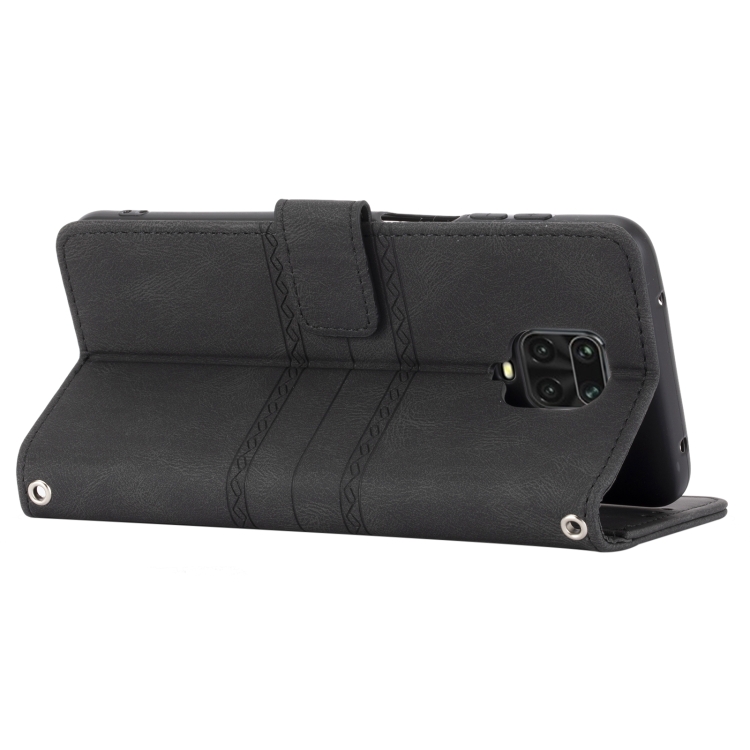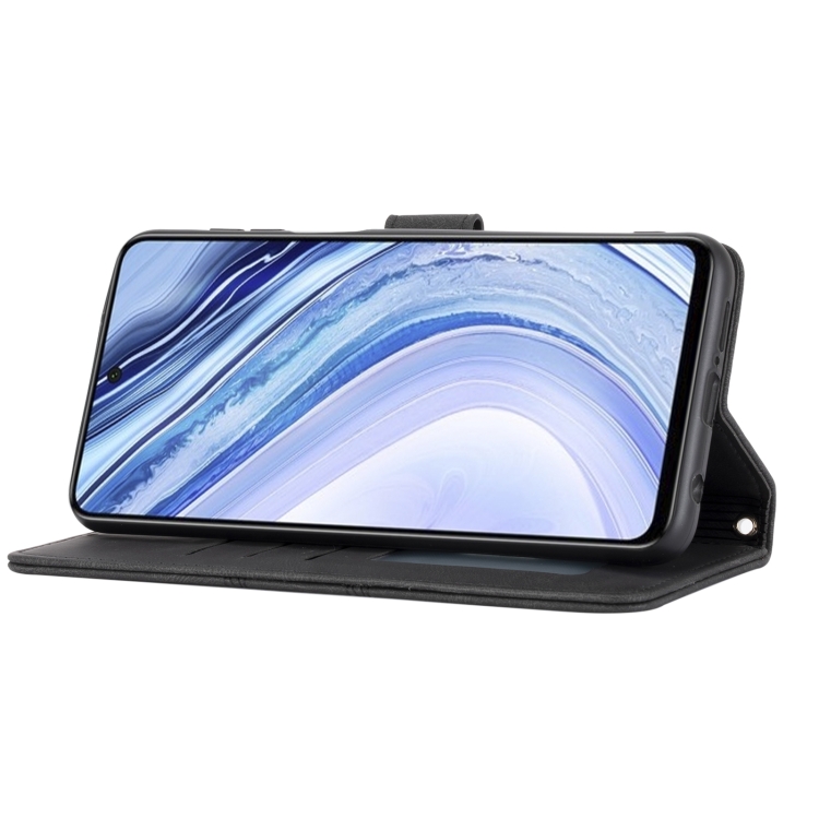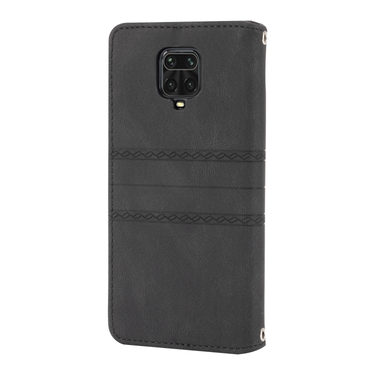 Para Xiaomi Redmi Note 9 Pro Max Rayas Hebilla Magnética de Rayas Pu + TPU Funda de Cuero Horizontal Flip de TPU con Soporte y Ranura para Tarjeta y Billetera y Marco de Fotos y Sling (Negro)