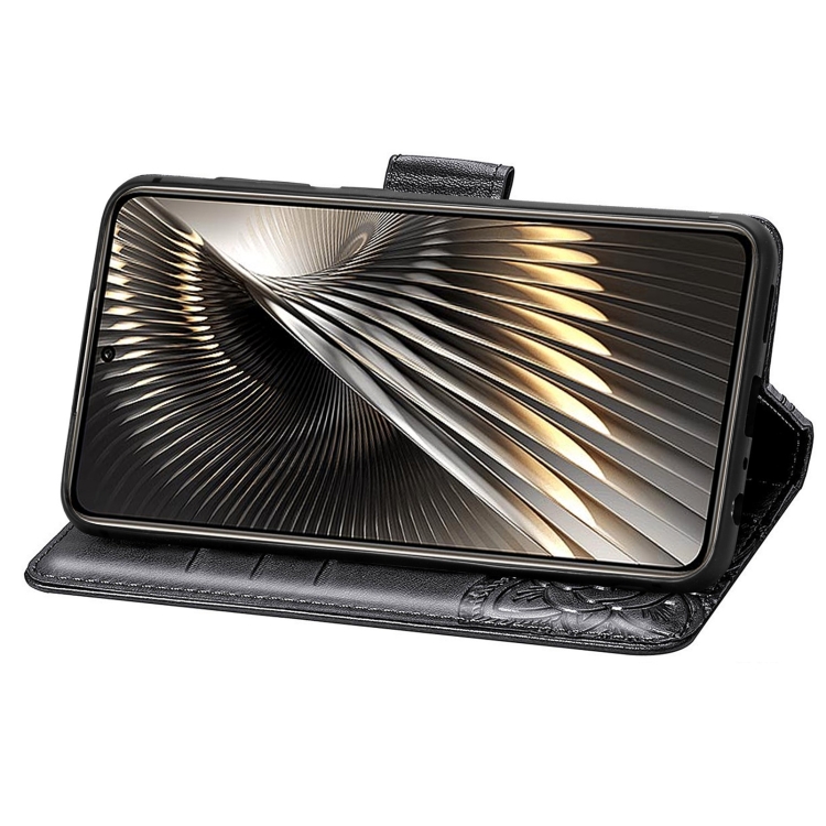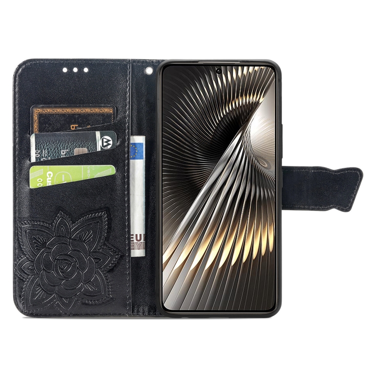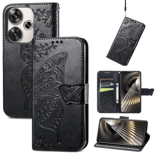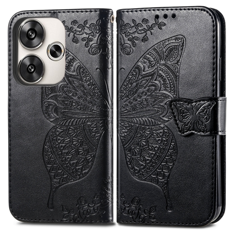 Para Xiaomi Redmi Turbo 3 5G Butterfly Love Flower Funda de Cuero En Relieve para Teléfono (Negro)