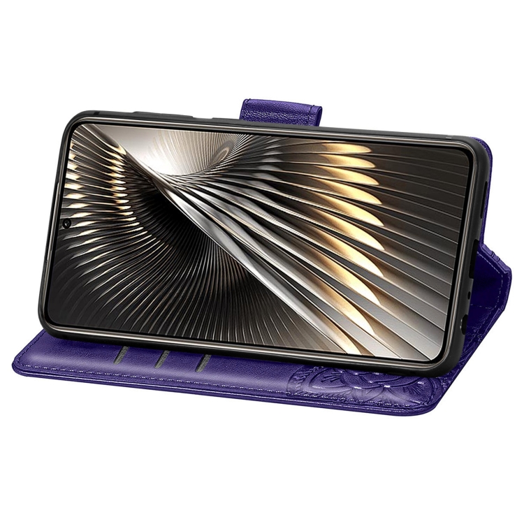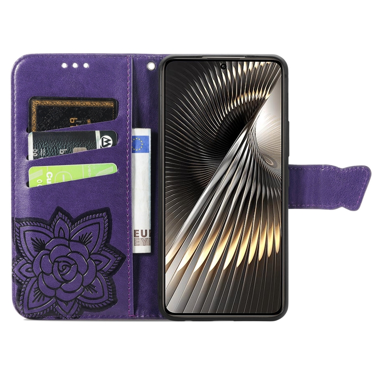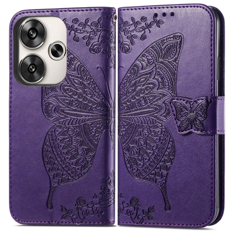 Para Xiaomi Redmi Turbo 3 5G Butterfly Love Flower Funda de Cuero En Relieve para Teléfono (Púrpura)