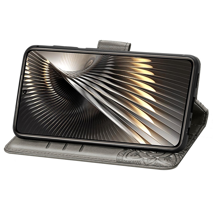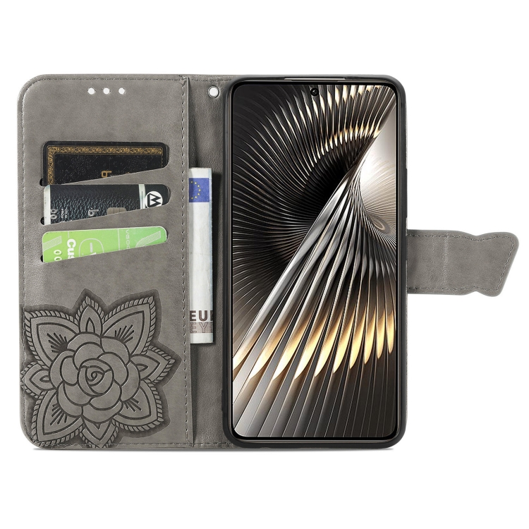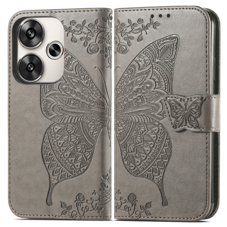 Para Xiaomi Redmi Turbo 3 5G Butterfly Love Flower Funda de Cuero para Teléfono En Relieve (Gris)