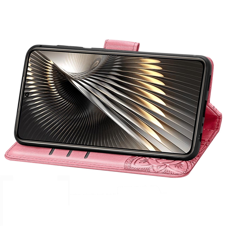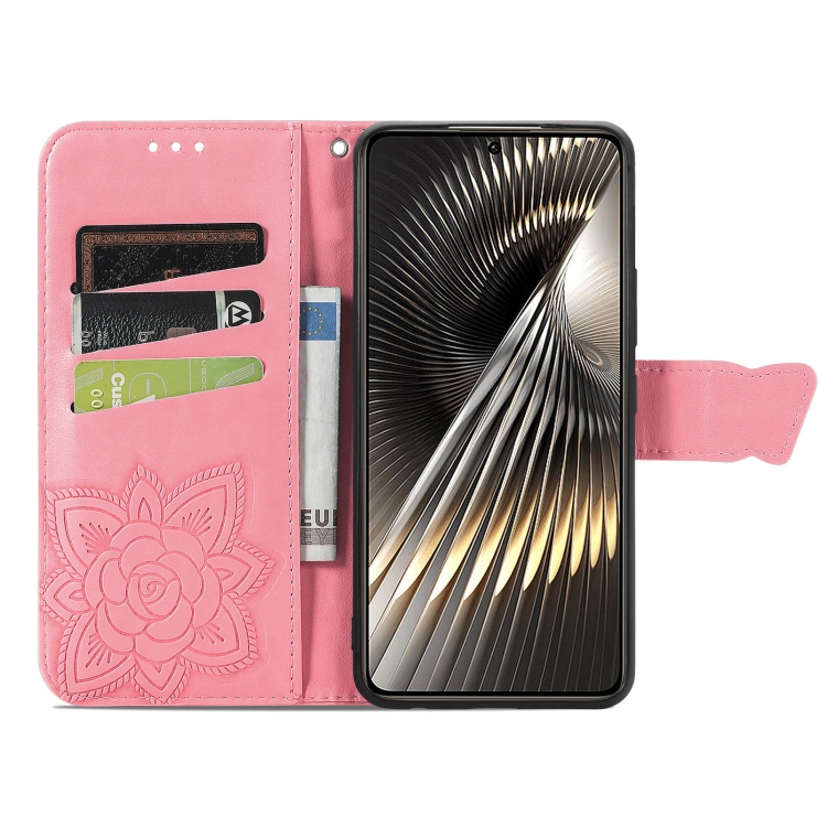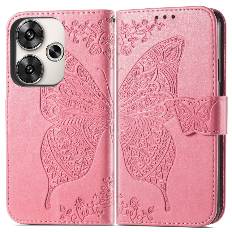 Para Xiaomi Redmi Turbo 3 5G Funda para Teléfono de Cuero con Relieve de Flor de Amor y Mariposa (Rosa)