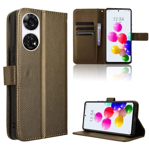 Funda de Cuero ZTE Anshin Family con Textura de Diamante (Marrón)