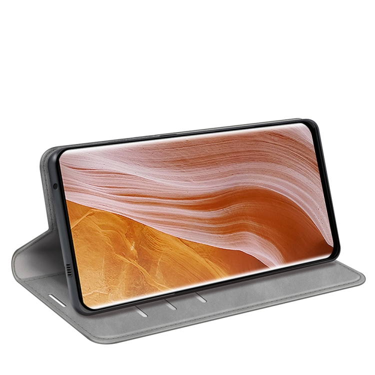 Caja de Teléfono para ZTE Axon 40 de Cuero con Succión Magnética Ultra Retro (Gris)