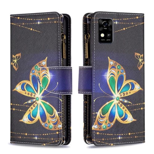 Funda de Cuero para ZTE Blade A31 con Patrón Cremallera y Diseño Mariposa