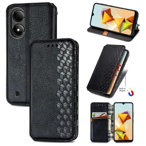 Funda de Cuero Magnético para ZTE Blade A33S Cubic Grid (Negro)