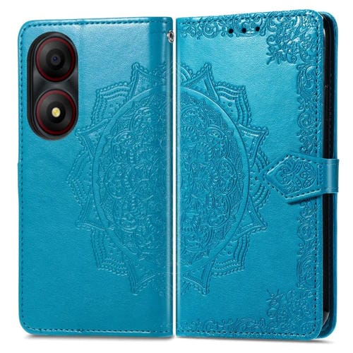 Funda para ZTE Blade A34 Cuero con Estampado de Flores Mandala (Azul)