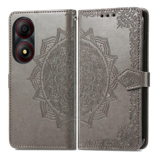 Funda para ZTE Blade A34 Cuero con Relieve de Flores Mandala (Gris)