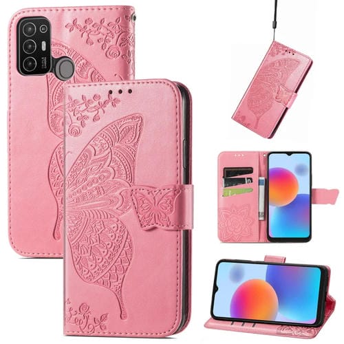 Estuche para ZTE Blade A52 Butterfly Love Flower de Cuero en Relieve (Rosa)