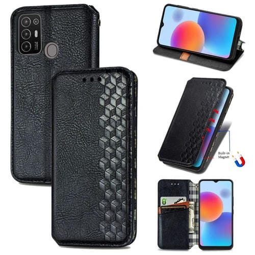 Funda de Cuero Magnética para ZTE Blade A52 con Rejilla Cúbica (Negro)