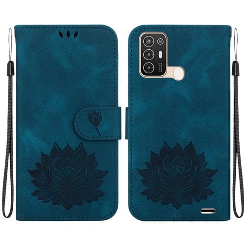 Funda de Cuero para ZTE Blade A52 con Relieve de Loto (Azul Oscuro)