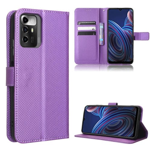Funda para ZTE Blade A72 5G de Cuero con Textura de Diamante (Púrpura)