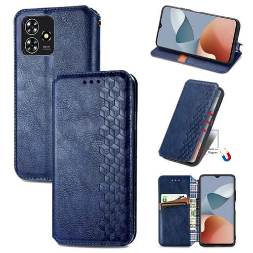 Funda de Teléfono ZTE Blade A73 4G Cubic Grid Cuero Magnético Prensado (Azul)