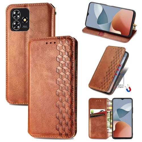 Funda de Cuero Magnético para ZTE Blade A73 4G Cubic Grid (Marrón)