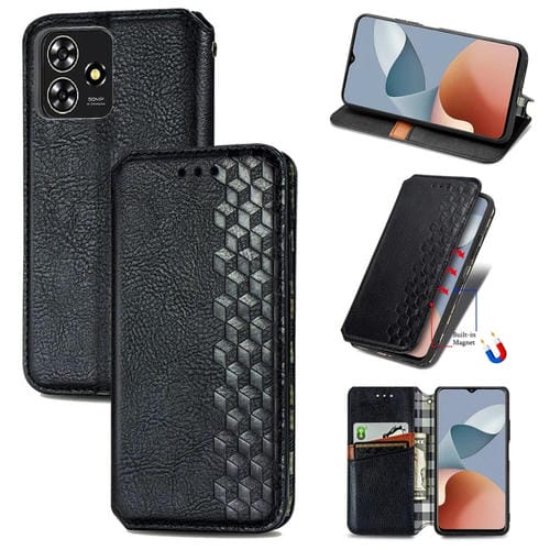 Funda de Cuero Magnético prensado para ZTE Blade A73 4G (Negro)