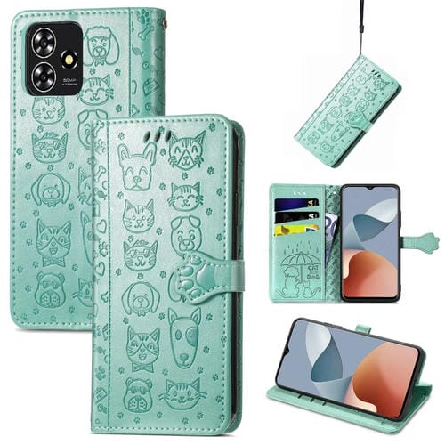 Funda de Cuero para ZTE Blade A73 4G con Relieve Perros y Gatos (Verde)