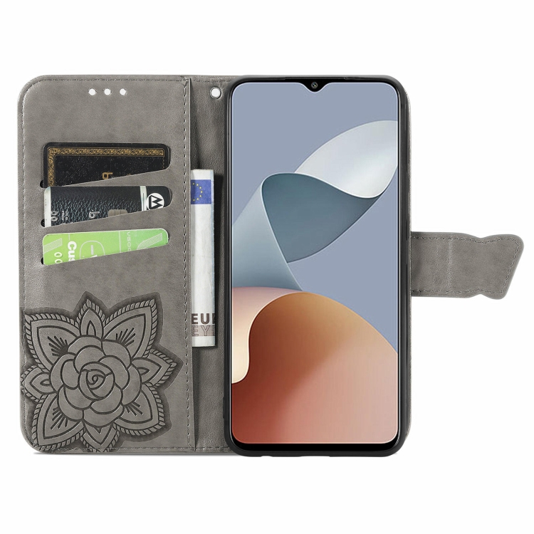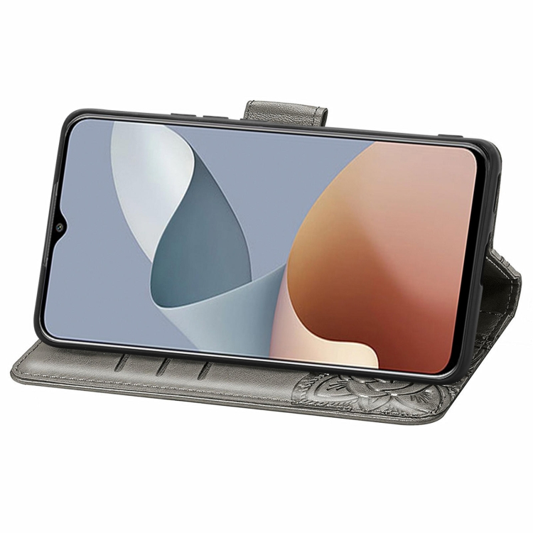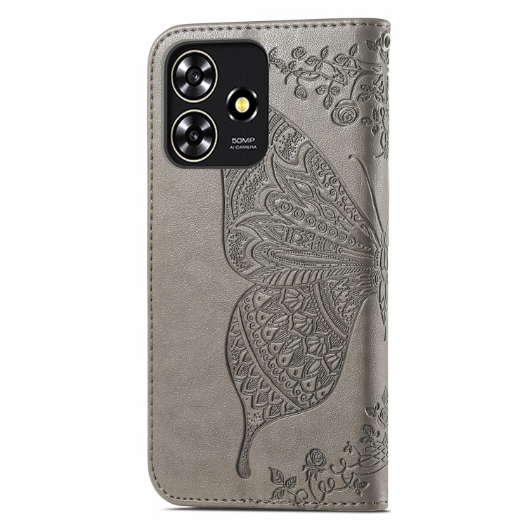 Funda para ZTE Blade A73 4G de Cuero con Relieve de Flor y Mariposa (Gris)