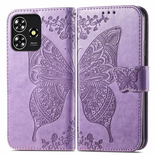 Funda para ZTE Blade A73 4G de Cuero con Relieve de Flor y Mariposa (Púrpura Claro)