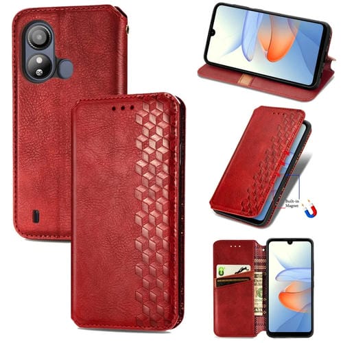 Funda para ZTE Blade L220 de Cuero Magnético Prensado con Rejilla Cúbica (Rojo)