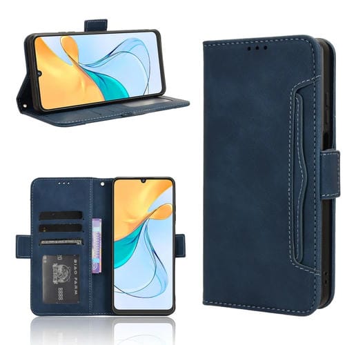Funda de Cuero para ZTE Blade V50 Vita 4G con Ranuras para Tarjetas Skin Feel Becerro (Azul)