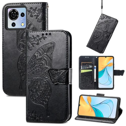Funda de Cuero para ZTE Blade V50 Vita Butterfly Love Flower en Relieve (Negro)